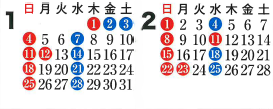 Home › お知らせ › 🎍1月 2月広島中央卸売市場水産カレンダー⛄ 2025-12-01 🎍1月 2月広島中央卸売市場水産カレンダー⛄ 2026年(令和8年) 1月,2月の水産カレンダーです。 赤印,青印は休市日になります。 (▢印は臨時開市日) 🍊11月 12月広島中央卸売市場水産カレンダー🎅
